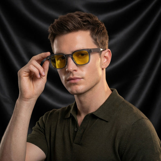 THE THICKER | Glossy Grey Square TR90 Frame With 100% UV Protected Night Vision Lenses