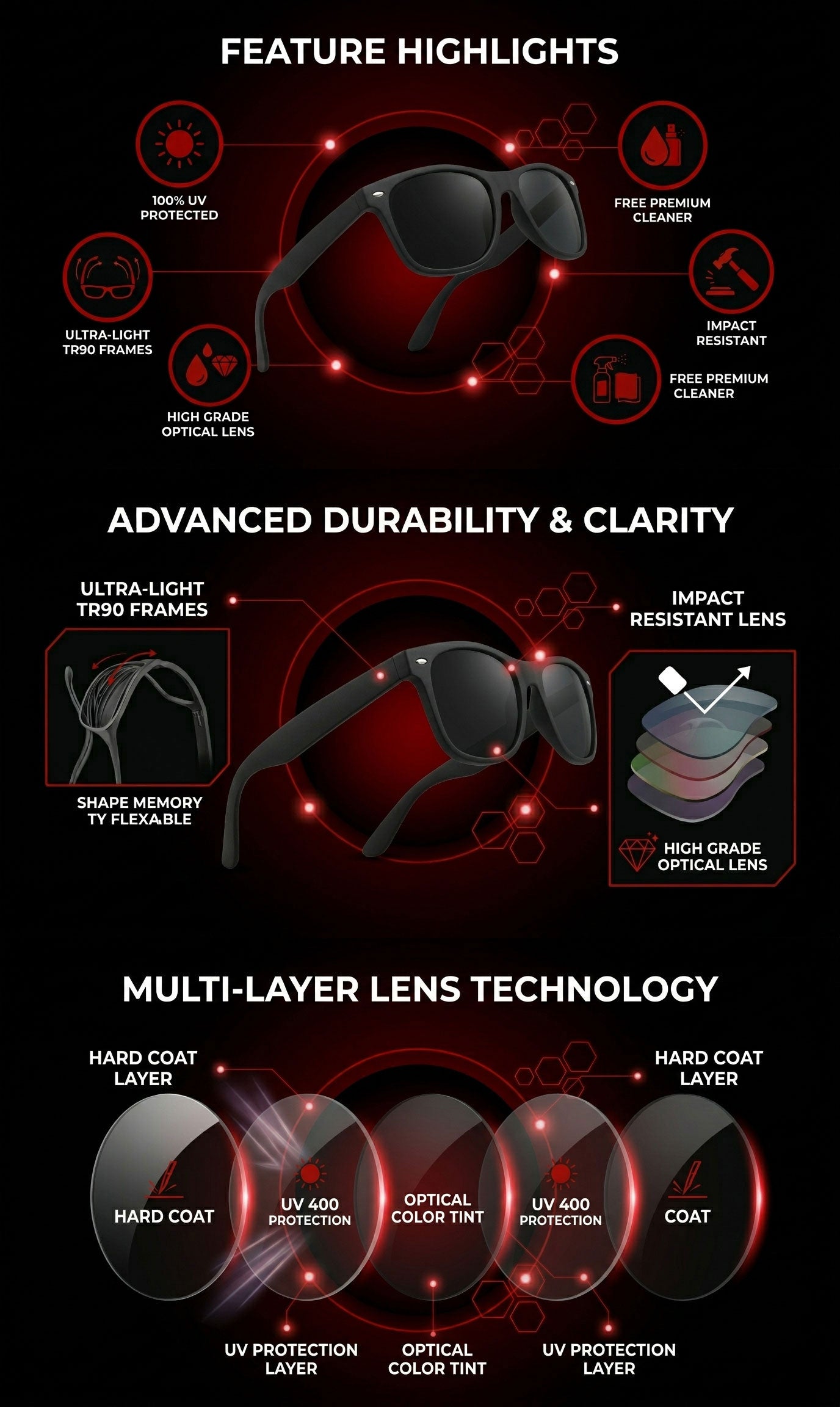 I love the sleek aesthetic of the TR90 series paired with the high-grade lenses. Itβs hard to find authentic 100% UV protection that looks this stylish while remaining so comfortable on the nose bridge.
